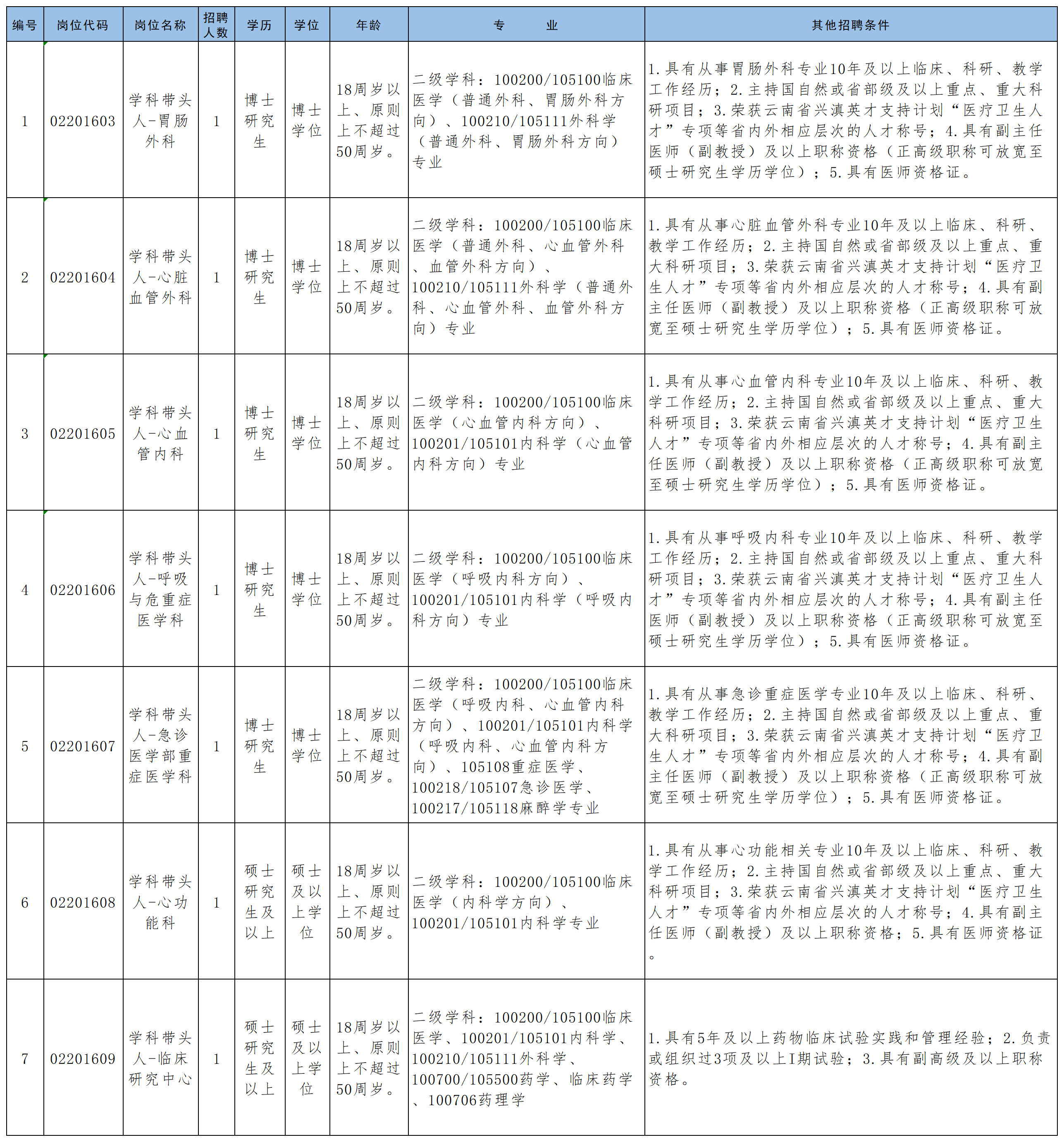 附件:2024年昆明医科大学第二附属医院“学科带头人”岗位计划表.xlsx